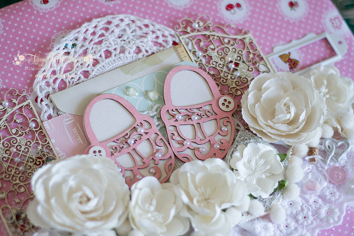 Я добавила в конце в рамочку имя девочки, для которой предназначен альбом и чипбордный заголовок "Принцесса", думаю маме будет приятно:)
